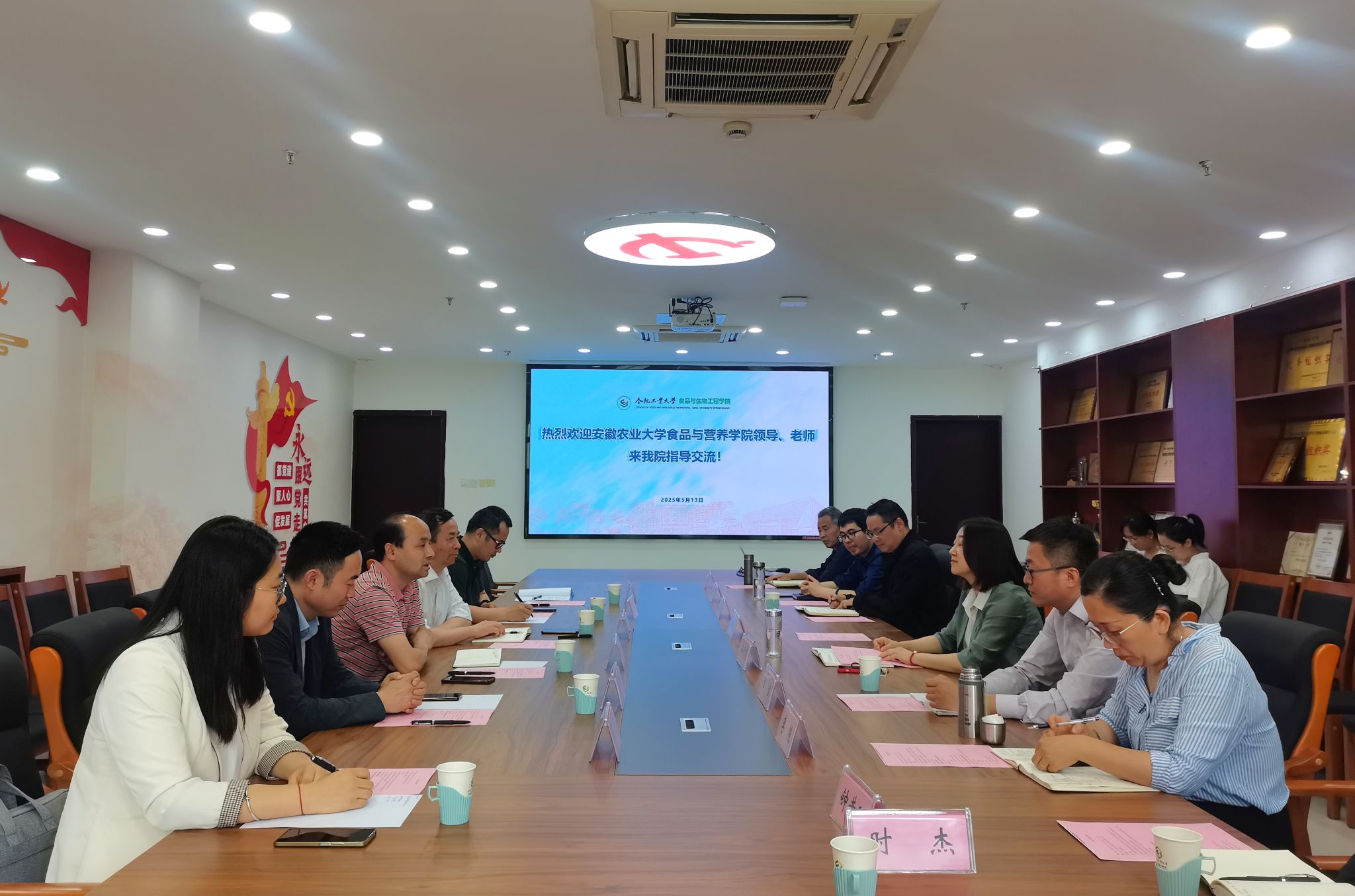 本网讯 5月13日,食品与营养学院党委书记孙福、院长周裔彬、副院长梁进一行赴合肥工业大学食品与生物工程学院开展调研交流。合肥工业大学食品与生物工程学院党委书记孙彩霞等热情接待了学院一行并主持座谈交流。