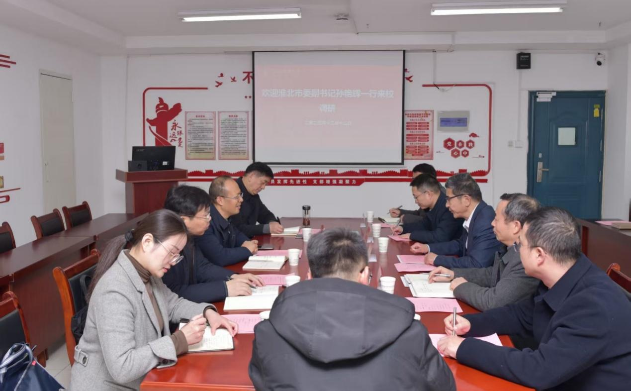 本网讯 12月12日下午,淮北市委副书记孙艳辉率淮北市粮食集团相关负责人一行来校,围绕“1+5”农业科技创新联盟建设与校地合作开展专题调研交流。校党委书记张庆亮陪同参观走访实验室,校党委副书记董雨主持座谈交流。