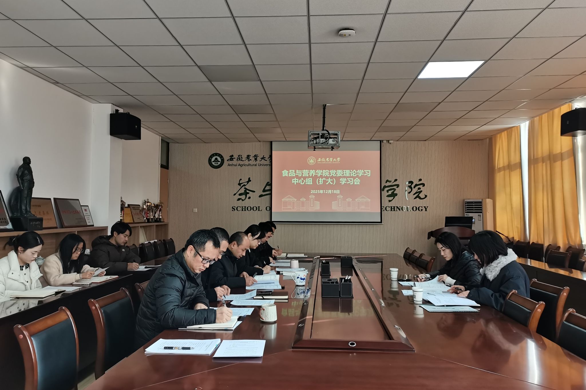 本网讯 12月18日上午,食品与营养学院在茶业楼219会议室召开党委理论学习中心组(扩大)学习会。院党委理论学习中心组成员、各党支部书记参加会议。学校列席旁听工作组成员武晓蓓、方馨妍列席旁听。会议由院党委书记孙福主持。