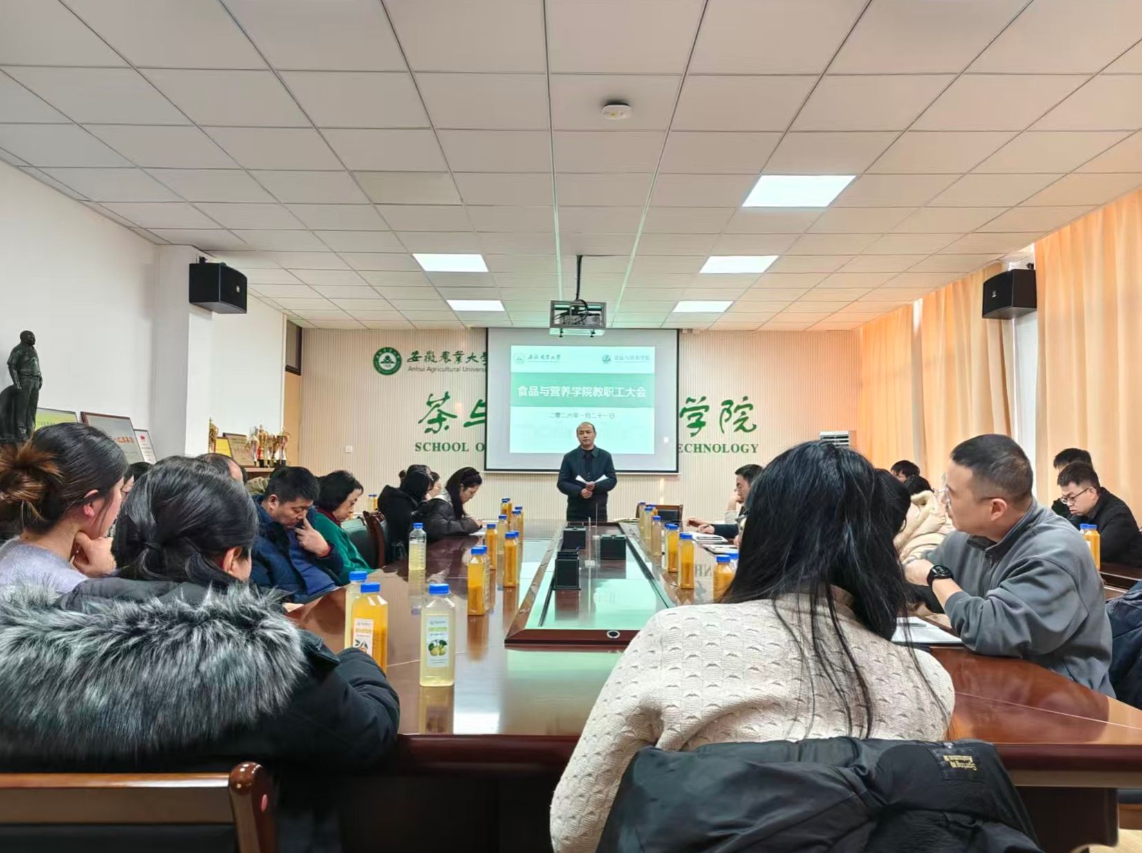 本网讯 1月21日下午,食品与营养学院在茶业楼219会议室召开教职工大会,总结2025年度工作,部署下一阶段重点任务。会议由学院党委书记孙福主持,学院全体教职工参加。