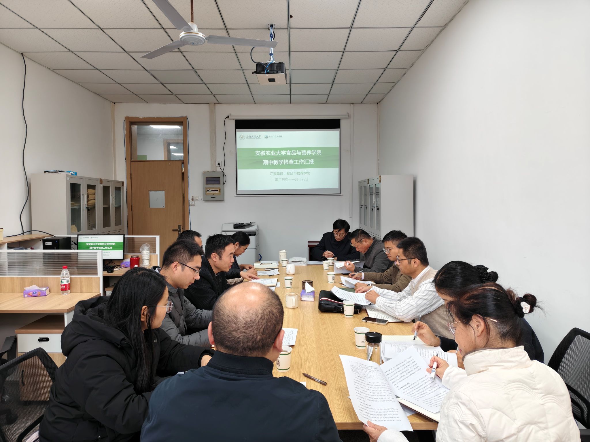 本网讯 11月18日,校教务处处长汪钟凯带队,校督导周杰、焦俊、徐华莉、党向利一行赴食品与营养学院,开展2025-2026学年第一学期期中教学检查工作。学院教学副院长梁进、院级督导组成员、各系(中心)负责人及教学秘书参加会议。