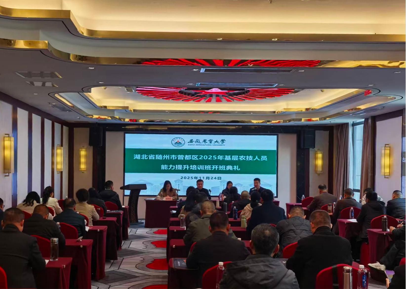 本网讯 为扎实推进基层农技推广体系改革与建设,全面提升农技人员的专业素养与服务能力,11月24日至28日,由安徽农业大学承办的“湖北省随州市曾都区2025年基层农技人员能力提升培训班”在安徽顺利举办。本次培训由曾都区农业农村局、湖北省农业广播电视学校曾都区分校组织,由安徽农业大学实施,来自曾都区的基层农技人员参加了为期五天的系统学习与实地考察。