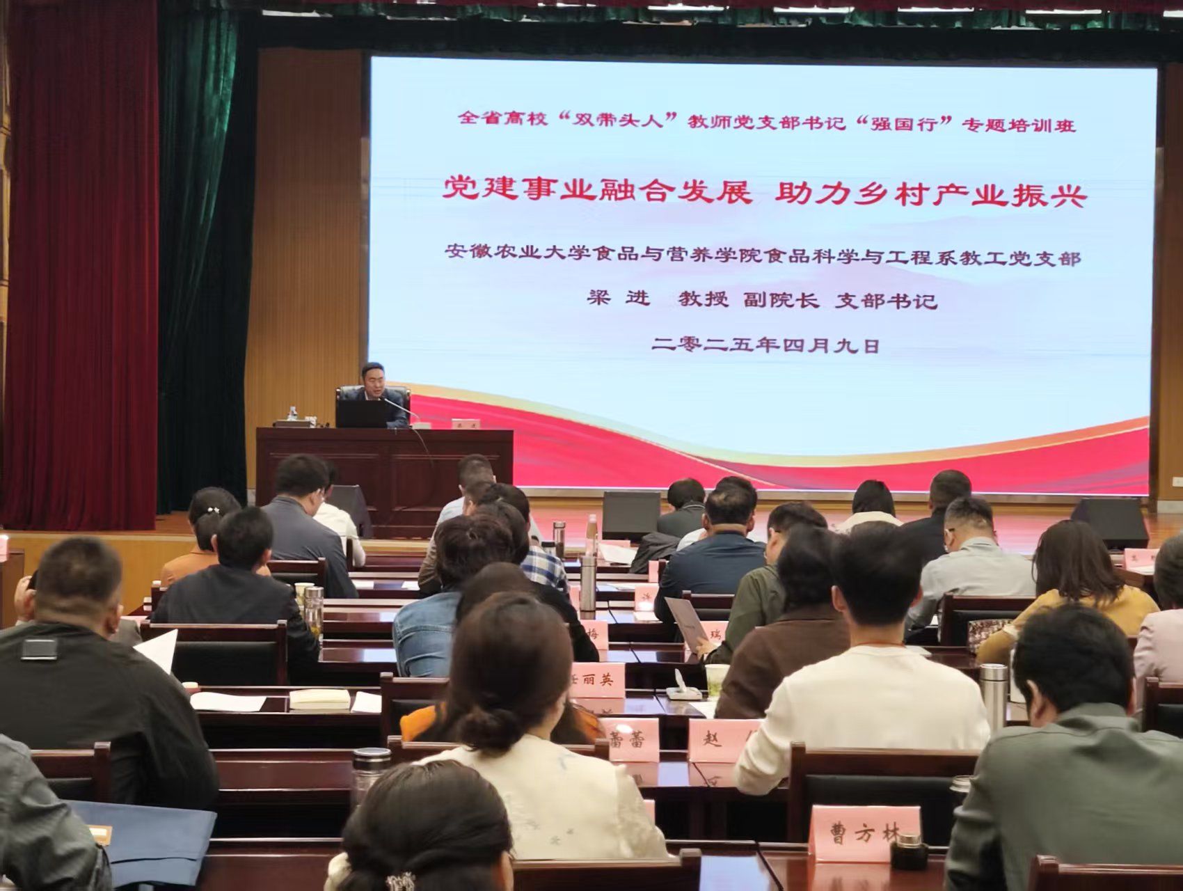 本网讯 4月9日下午,食品与营养学院副院长、食品科学与工程系教工党支部书记梁进教授应邀为全省“双带头人”教师党支部书记“强国行”专题培训班授课,带来了一场主题为《党建事业融合发展 助力乡村产业振兴》的精彩课程。