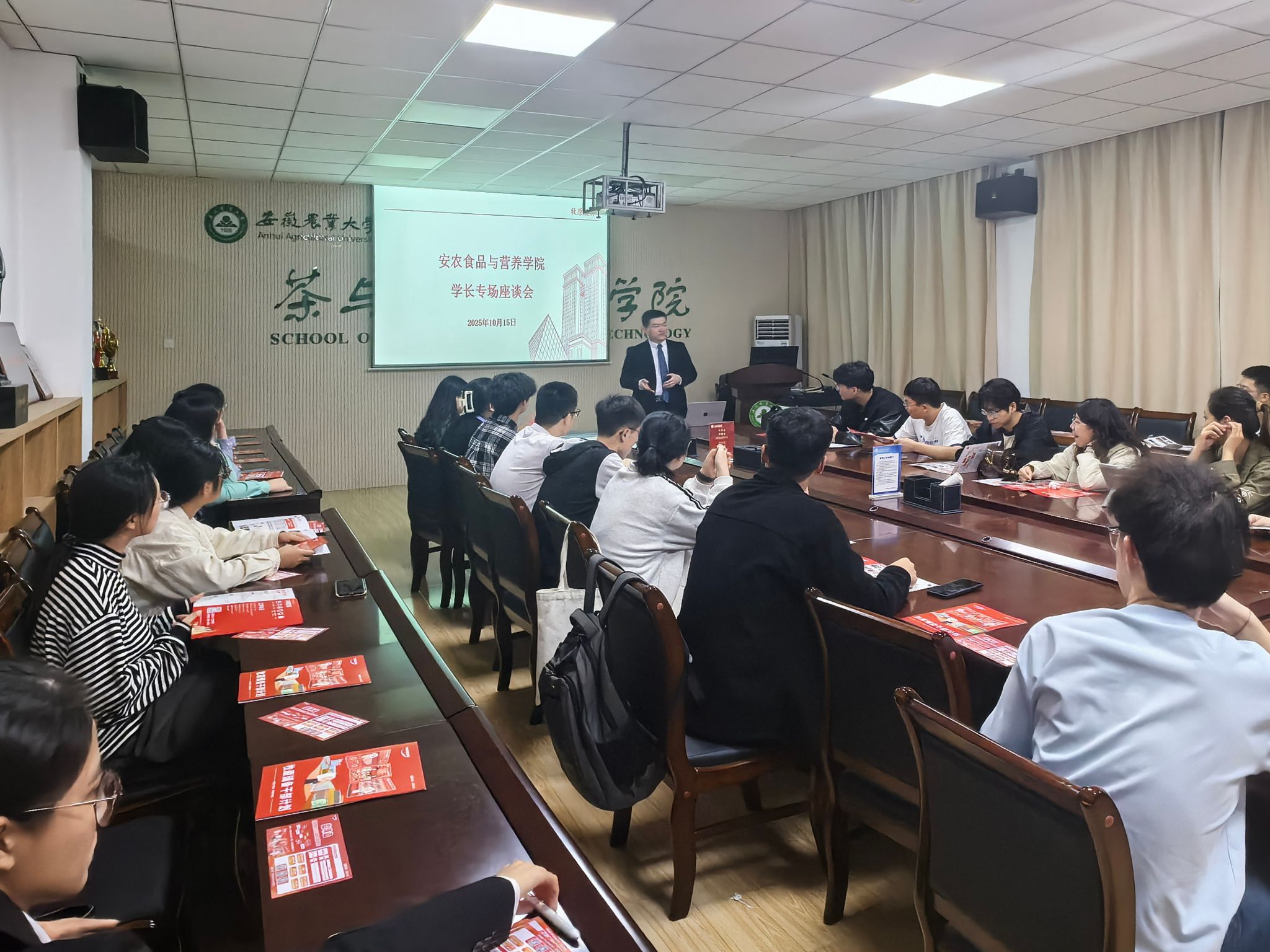 交流环节,季振健结合自身在食品领域的专业背景和行业洞察,重点分析了当前食品相关专业的就业形势与未来发展趋势。他指出,在现代农业和食品工业飞速升级的背景下,食品专业人才在大型现代化企业中将拥有越来越广阔的发展平台。他的分析为在场同学提供了宝贵的行业视角,帮助他们更精准地进行职业定位。